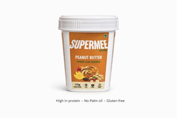 Supermee Peanut Butter – Mango Chia Flavour blends roasted peanuts with natural mango notes and nutrient-rich chia seeds. The result? A creamy, flavourful spread that fuels your day without unnecessary additives.